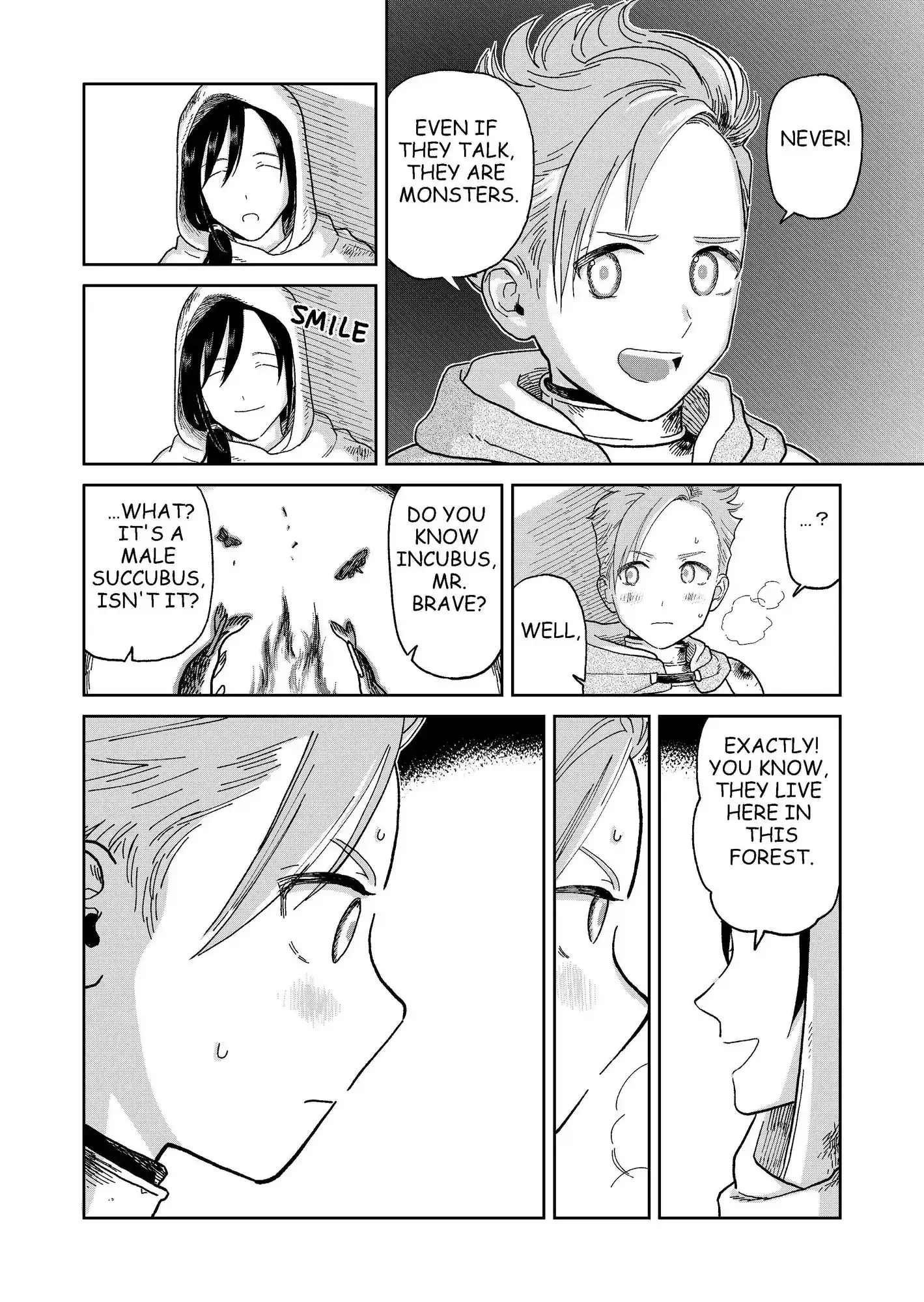 The hero who subjugates the monster without difficulty decides to spend the night in the forest with the villagers.